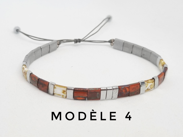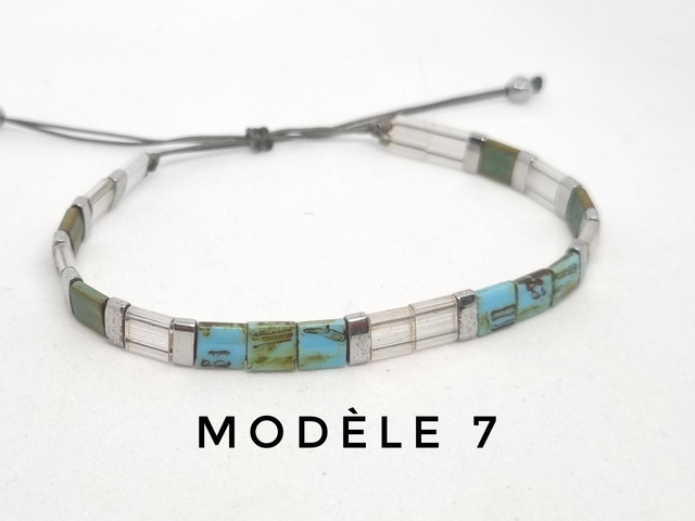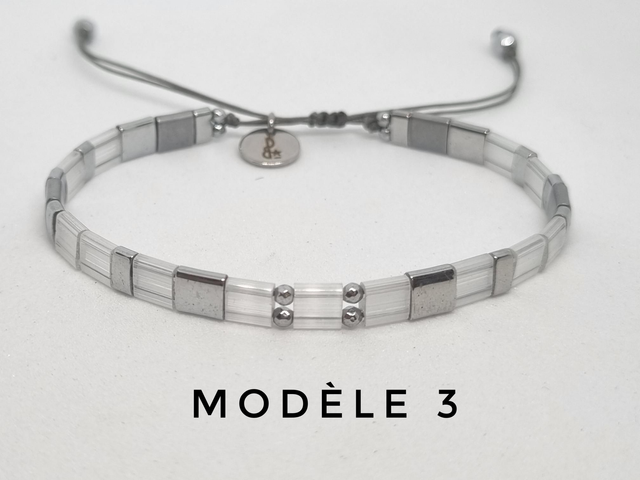 Bracelet en perles de verre Tila, et hématites argentées, réglable par coulissage.