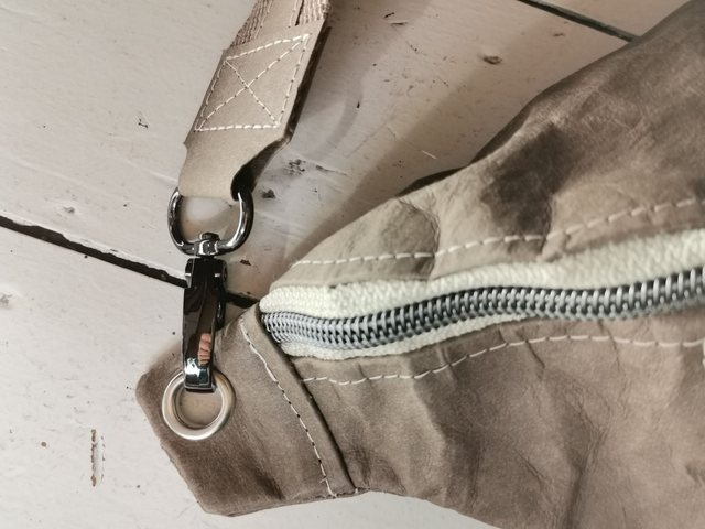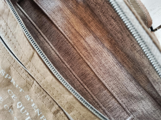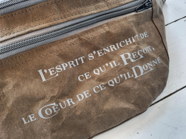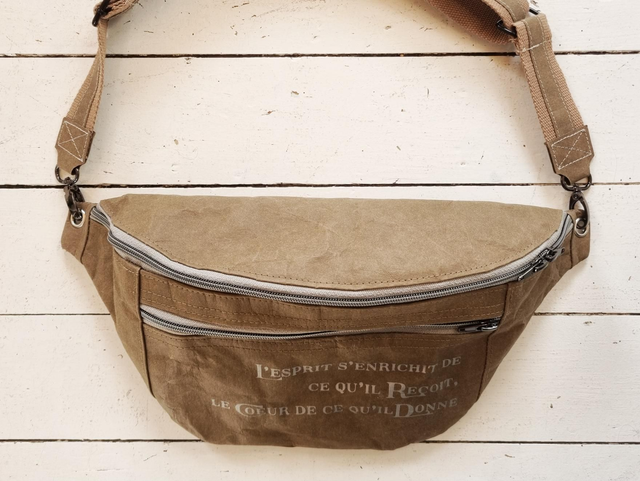 Sac banane à porter en bandoulière, 2 poches zippées et une poche intérieure. Doublure en tissu enduit.