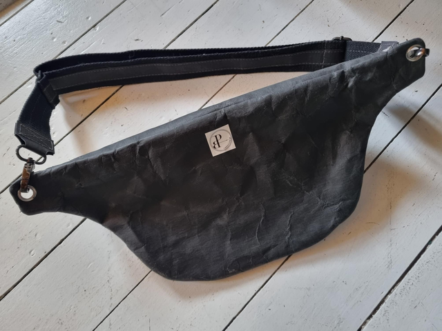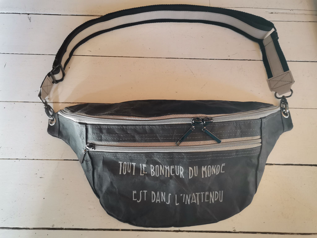 Sac banane à porter en bandoulière, 2 poches zippées et une poche intérieure. Doublure en tissu enduit.
