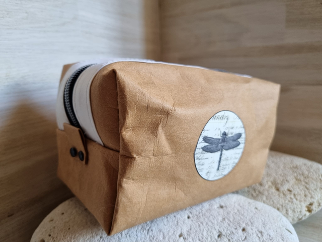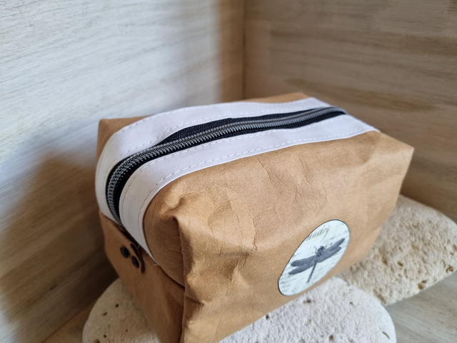 Trousse en forme de boîte rectangulaire, non doublée. Idéal pour ranger des objets en volume, comme des chargeurs et des câbles, ou bien des accessoires de maquillage. 2 images différentes sur le recto et verso.